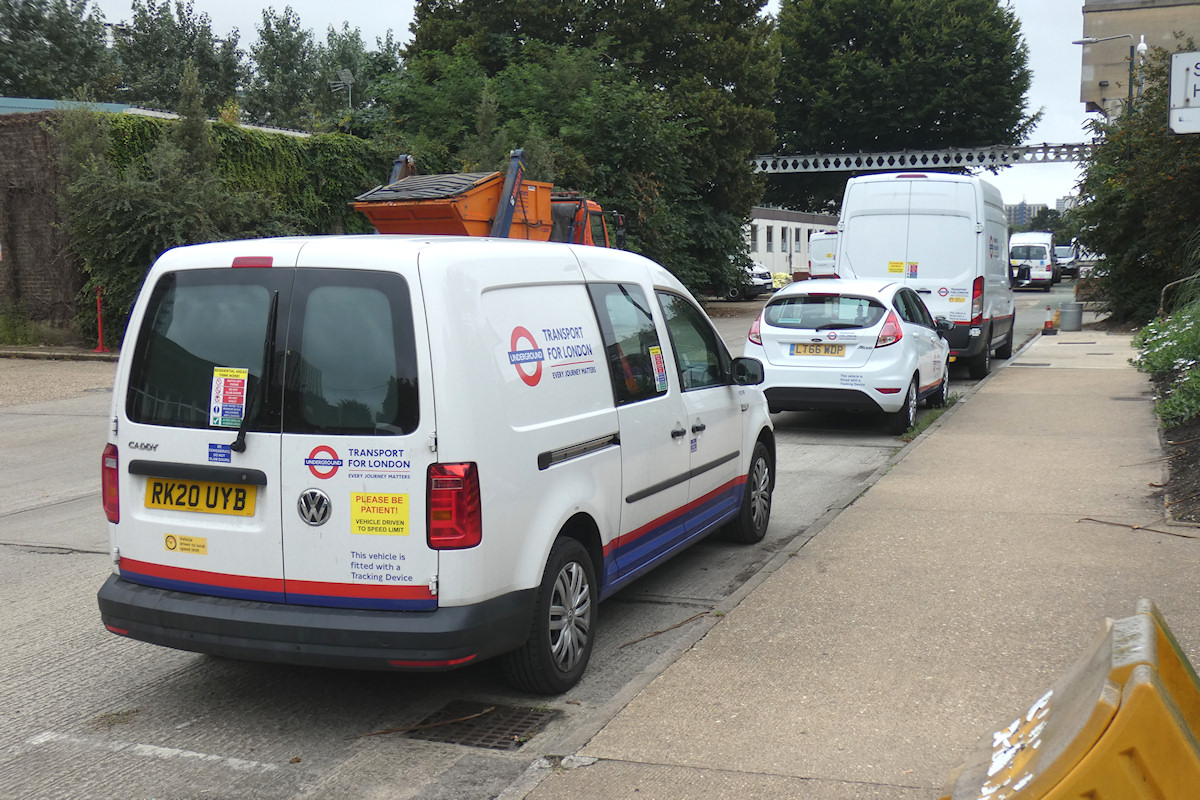 | Details: Service vehicles to be found at Acton Works typically include a mixture of vehicles that are based there and others that are visiting for various purposes. On 11th September 2021 this line-up was photographed outside Signal House (opposite the DSM offices). To the fore is Volkswagen Caddy Maxi crew van 9131VW, new the previous June. In front of that was Ford Fiesta car 8233F, latterly one of the night-time, Griffith House gang, while beyond that was Acton-based high-roof Ford Transit van 8411F. More service vehicles can be seen in the distance, on the roadway leading towards the traverser. | |||||
