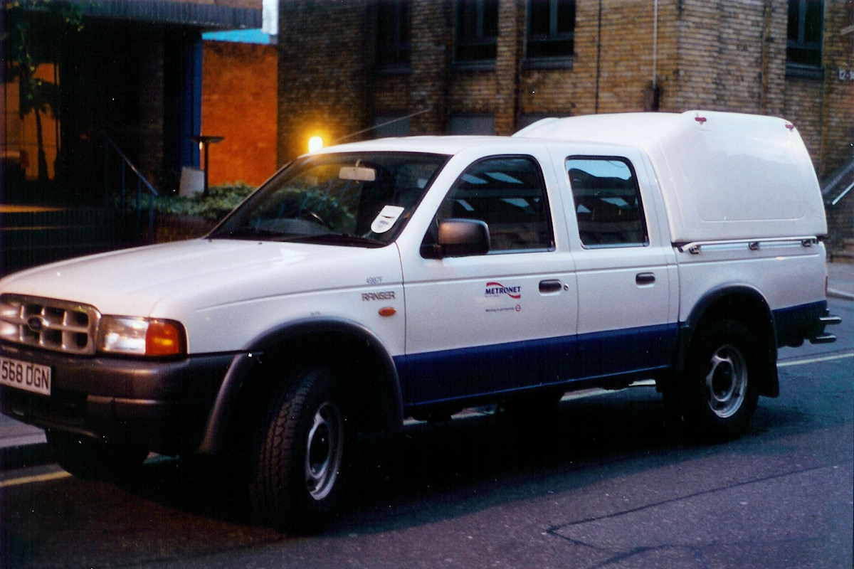 | Details: The first three Ford Ranger service vehicles were relatively easy to see, normally being kept at Edgware Road Station. Even so, photos are quite scarce, and this is the only one I have of 4987F. Unlike the other two, 4987F was fitted with a 'hard-top' cover over the load-space. These covers came in a variety of configurations, with either solid or glazed sides and to two different heights. That on 4987F is the taller, solid type. The date and location of this photo are not known, though it looks to have been taken on Harcourt Street (near Griffith House), probably not long after the application of Metronet logos in 2003. | |||