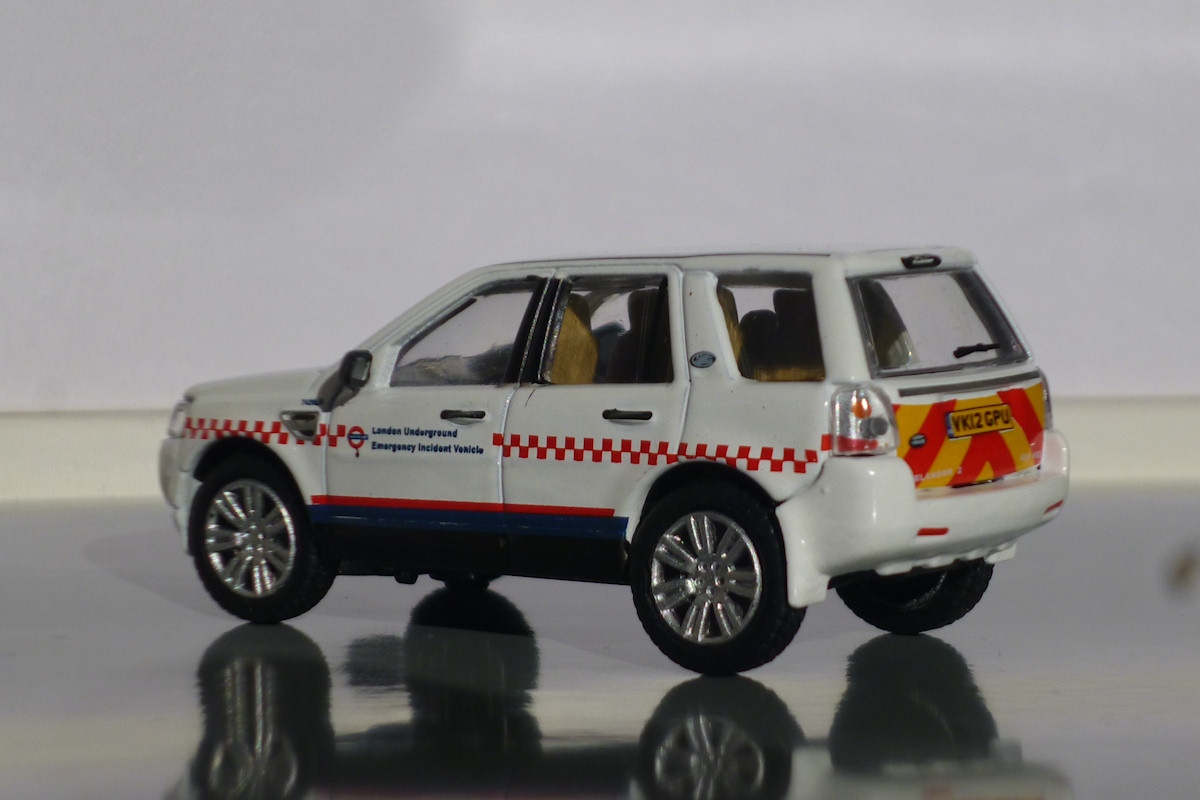 | Details: Another view of the Oxford Diecast model of unique LUL Land Rover Freelander car 7429LR, showing the excellent livery application. | |||