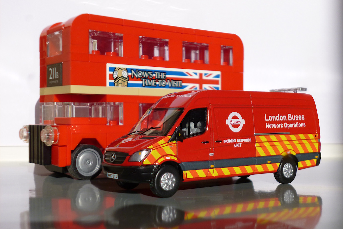 | Details: Purists will realise that Creative Master Northcord's 1:76 scale model of a London Buses Incident Response Unit van (released in 2008) is based on a long-wheelbase Mercedes Sprinter van, whereas the real IRUs used medium-wheelbase Sprinters. This is not a big deal for me personally, especially as the livery has been extremely well replicated. I wonder what rivet counters would make of the Lego Routemaster that I posed the van with?! | |||