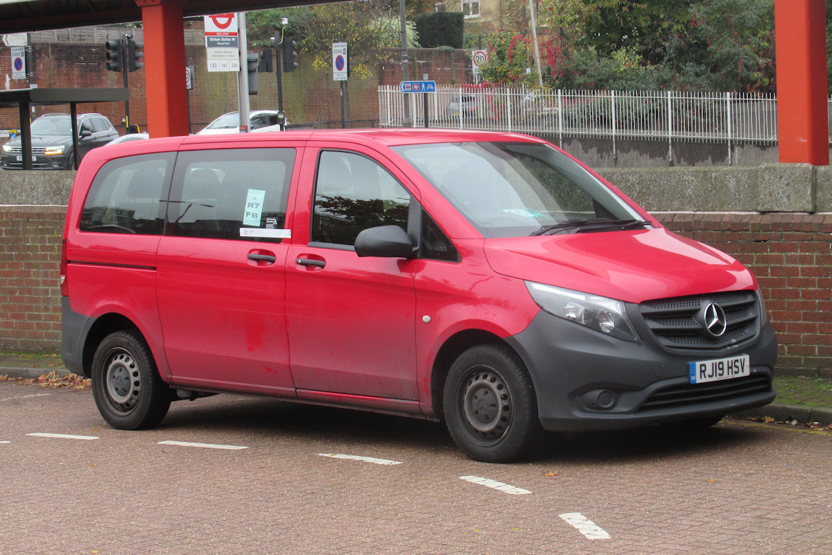 | Details: Do we really need a third photo of an unmarked red Mercedes Vito minibus at Eltham? Well, perhaps. The allocations of several Go-Ahead London minibuses have changed recently, perhaps as a result of the delivery of (at least) 15 new examples. RJ19HSV had been based at Northumberland Park garage since new in April 2019. By the time it was photographed at Eltham on 10th November 2021 it had moved to Orpington. According to the notices in the side windows it is normally assigned to support route R7. Although there are no notices about COVID and facemasks, there is a length of tape on the offside door, as also seen on other minibuses. However, closer examination shows this to be marked with something like 'Compliant Cleaning', so it could be that the tapes are applied to indicate that the vehicle has been cleaned, rather than to prevent the offside passenger door from being used (as was originally thought). Newer Vito WP21YCZ may have also moved recently. New in late August, it was seen at Canning Town in October and in Croydon in November. As always, reports of observations would be welcomed so that we can try and keep up to date with such changes. | ||||