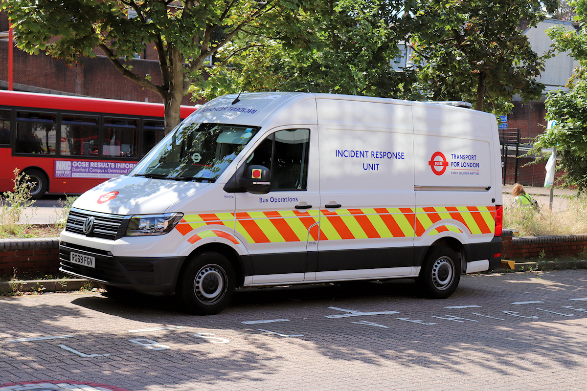 | Details: Moving on to more recent photos (and shorter captions), this is a view of London Buses Incident Response Unit 9066VW at Eltham Bus Station on 10th August 2021. This was one of the pre-COVID deliveries and has been at Eltham since February 2020. Before today, just three of the 45 VW Crafter IRUs had yet to appear on LTSV. Curiously, two of those three are based at Eltham, which is normally one of the best covered locations on LTSV. Remaining after today are 9060VW at Stratford City and 9094VW at Eltham, though in both cases I am waiting for more interesting photos to use! There are also a few vans that have only been photographed at the dealership before delivery. | ||||
