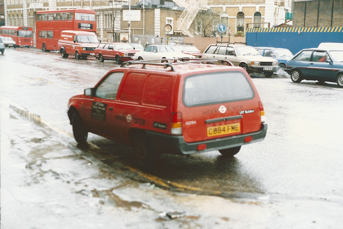 | Details: 48 C-prefix registered vehicles joined the leased fleet, though I only had two photos on file that had not already been shown on LTSV. The first is this one showing Bedford Astra van 3360B at St Pancras Station on 21st April 1986. This was one of a large batch of 15 petrol Astra vans with C8xxFME registrations, and which initially operated without fleetnumbers. LT documents show that they were 'additional' vehicles (i.e. not acquired as replacements for existing vehicles), and were intended for use by LT Builders. The vans were given large 'work force' fleetnames and labels on the cab doors showing the Parsons Green address of LRT Builders. The focus on this photo is a little off, being centred on the vehicles in the background. Among them are an MCW Metrobus (which looks fine in unrelieved red) and a Bristol LH single-decker (which does not - they originally had white relief). The 95 Bristol LHs in the London Transport fleet (along with a smaller batch of shorter LHS buses) were a bit of an oddity. They were the only Bristols bought since the 1950s and they were used on routes that could not handle the standard single-decker at the time (the Leyland National). Most of these routes were in outer London, but the C11 came in as far as Kings Cross. | |||