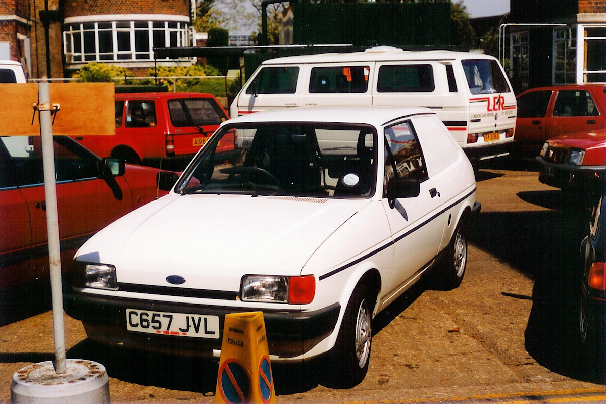 | Details: Colin Lloyd made regular visits to Acton Works in the late 1980s and took lots of photographs. He kindly let me take copies of many of these but there were lots more that I had not yet done when Colin sadly became ill and died a few years ago. His huge photograph collection has apparently been saved but I am told it will not be accessible for some time. Perhaps one day we will get to see the rest. This photo is interesting as it shows a completely unmarked Ford Fiesta van in the DSM van yard at Acton Works on 8th May 1989. First licensed in August 1985, this van was taken on lease by LT in December 1987 and given fleetnumber 3577F. This was unusual as most vehicles were leased from new. I don't know if Colin took this photograph because he was aware of the vehicle's status, or because he just photographed everything. It was fortunate though, as the van was officially taken out of stock the following day. Another interesting point is that very few of the other vehicles visible appear to be 'proper' service vehicles. There is a Volkswagen minibus from London Car Rentals, and various unmarked cars. The Astra estate on the left may be 3212B (A196OHO), although that was reportedly returned off lease in March 1988. | ||||