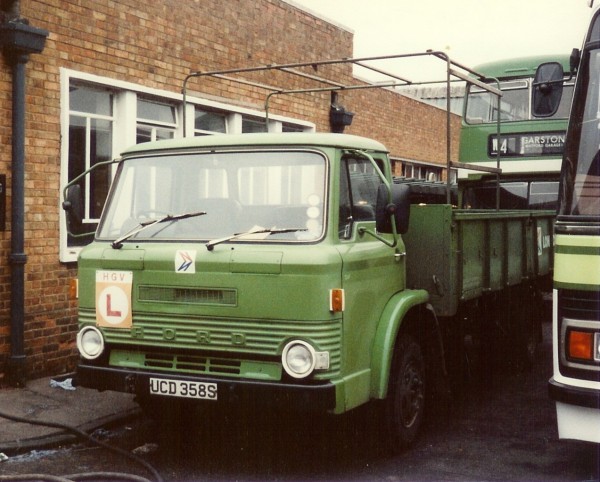 | Details: London Country 24F (UCD358S) was a Ford D0910 Dropside Lorry new in 1977. When photographed at Garston garage on 11th February 1984, it had been in use as a driver trainer, hence the plate on the front panel. Note the small grey fleetnumber on the cab door, and the tilt support framework. | |||||