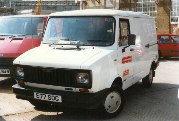 | Details: 3692L (E77SOG) was an unusual Freight Rover Sherpa 200 van, acquired on lease in 1988 and used until January 1990. It carried white livery with temporary-looking lettering and may have been second-hand. It was found at Acton Works on 4th August 1989. Note the smart wheel trims. | ||||