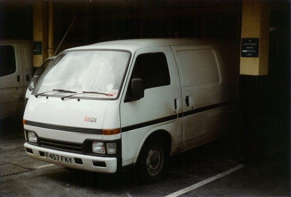 | Details: Another example of a stealth service vehicle, given away this time by it being parked at the advertising department offices on Jamestown Road, Camden. 3760B (F457FKY) was a Vauxhall Midi van used from July 1989 until August 1992, photographed on 17th February 1990. A Vauxhall Rascal van can just be seen parked alongside, showing the difference in size between these two broadly similar designs. | ||||