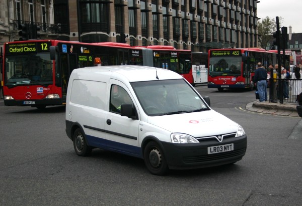 | Details: An interesting view taken at Parliament Square in November 2004 shows a Vauxhall Combo van numbered 5450V (LR03MYT). Despite carrying London Underground livery, this vehicle has been used by London Buses since delivery in April 2003. This is evidenced by the London Buses sticker on the bonnet and also by the flashing beacon mounted on the roof. The fleetnumber may have been incorrectly applied as official information shows 5450V to be a similar vehicle registered LN03XAJ. In the background are two examples of what is fast becoming the standard London bus, Merecedes-Benz Citaro artics. | |||