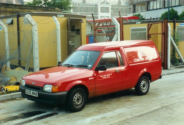 | Details: Lettered as a London United Busways Ltd Training Vehicle, Ford Escort Van 3599F (E235MAB) has the boxed style of cab-side lettering used by CDS in the late 1980s. It had also received a large London United logo on the bodyside when photographed at Hammersmith bus station on 25th May 1991. | ||||