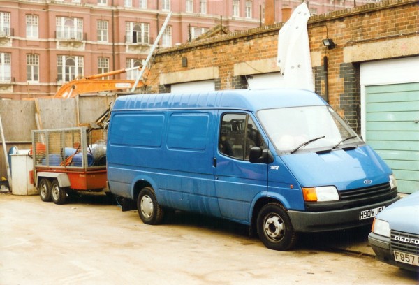 | Details: Photographed in the yard at Edgware Road Station (which is right next to the yard of Griffith House!) on 27th February 1991, Ford Transit LWB Van 3873F (H904JEL) carries the short-lived blue livery. It is coupled to Cobul Ranger trailer T48. | |||||