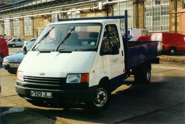 | Details: This smart Ford Transit Dropside was already 2 and a half years old when photographed at Acton Works on 2nd April 1993. Not carrying its fleetnumber, 3979F (H729JLJ) was allocated to the Victoria Line Infrastructure Manager. In the background are a variety of vehicles including a Ford Escort Van, a Ford Fiesta lettered for TVT (Testing of Vehicles and Training) and a Ford Transit Dropside with crew cab. | ||||