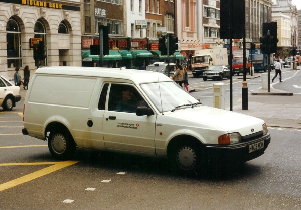 | Details: One of the last Ford Escort vans to the angular, 1980s design was 4029F (H403MOK) seen here at Victoria on 24th May 1991. Delivered in October 1990, it ran in all-over white. | |||