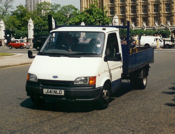 | Details: Many of the early Ford Transit dropsides were plain versions such as 4197F (J141NLD), photographed in Parliament Square on 16th June 1995. Refinements such as crew-cabs and tail-lifts became more common later on. New in June 1992, 4197F was based at Ealing Common depot and lasted just over four years. | |||