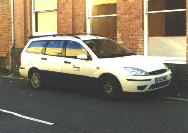 | Details: The smart appearance of the LUL livery is somewhat spoiled on some cars by the decision not to carry the blue skirt around the front and rear of the vehicle. Illustrating this is Metronet Ford Focus estate 5317F (VX02NGU), parked at Lillie Bridge in November 2004. | ||||
