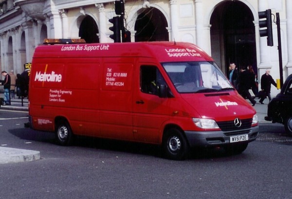 | Details: Metroline's current Bus Support Unit is Mercedes-Benz Sprinter 311 van WV51PZE and this can often be seen around central London. On 16th March 2004 it was passing Trafalgar Square. | |||