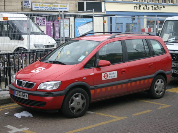 | Details: The Vauxhall Zafiras based in Central London seem to be harder to track down than their suburban sisters. 5565V (LT53GFX) was parked at Finsbury Park Bus Station on 9th March 2005 but has also been reported at the Victoria Coach Station headquarters of LBSL. | ||||