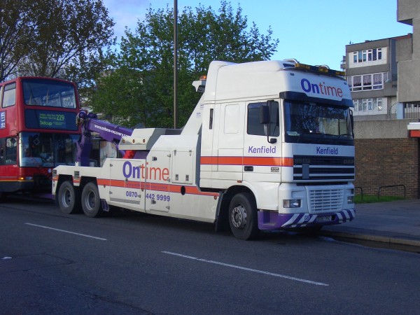 | Details: Seen preparing to tow a failed PVL250 at Abbey Wood on 27th April 2005 is Ontime / Kenfield DAF 95XF recovery truck EO51THZ. | ||