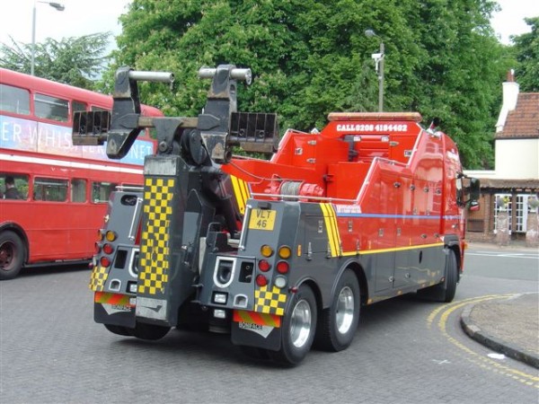 | Details: This view of Go-Ahead's Volvo FM12 tow truck VLT46 at Putney Heath on 21st May 2005 shows the business end of this impressive vehicle. Particularly notable is the smaller rear axle, seen here in the raised position. This is lowered when the spectacle hoist is in use. | |||