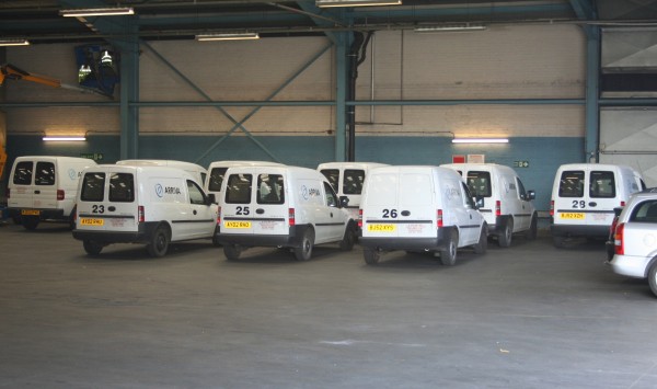 | Details: This view looking into Tottenham Garage on 19th July 2005 shows no less than 9 Arriva London Vauxhall Combo Vans. On the far left is an example of the early version of this design while all the others are of the revised model. Note that none of the fleetnumbers displayed tie-up with those published in SUP15B! The visible identities are (from left to right) W303PVC, 23 AY02RHU, 25 AY02RHO, 26 BJ52XYS and 28 BJ52XZH. | ||||||||