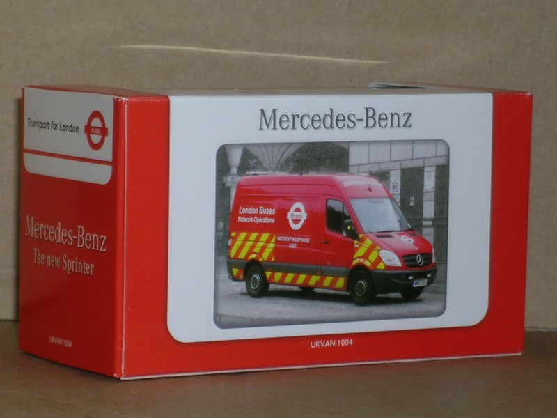 | News Release today ukvan 1004 Mercedes-Benz Sprinter : London Buses Creative Master Northcord Limited is pleased to announce the release of ukvan 1004, the second replica on its most popular Mercedes-Benz Sprinter panel van model tooling. ukvan 1004 represents London Buses Service Fleet number 6352M (WM57 DYJ). London Buses currently operates a fleet of 26 Mercedes-Benz Sprinters, for network operations, that entered service at the very start of 2008. 6352M is allocated at Stratford Bus Station as an Incident Response Unit. The Sprinter has reflective side and rear flashes as well as the light bar at the back on the roof. The London Buses Roundel and registration number of the Sprinter van are also carried on the roof. Key features of the ukvan 1000 series, exemplified on ukvan 1004, include interior detail showing the driver’s instrument binnacle, steering wheel, single driver’s seat, and also chassis detail that includes replicated drive-train and exhaust system as well as fuel tank and spare wheel. The windscreen wipers are individually made pieces and therefore the models are not suitable for children under 14 years of age. The ukvan 1004 model carries a numbered Limited Edition Certificate showing that it is one of a run of only 1700 pieces worldwide. | Tue 28/10/2008, 08:58 |