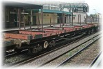 Lot number 3907 was issued for the first production batch of BDA rebuilds, converted at BR Ashford in 1977 and 1978. 200 wagons were involved, all originally built to diagrams 1/472 and 1/476 between 1950 and 1957, becoming 950001 to 950200 to design code BD006A. Six wooden bolsters were fitted and the wagons were painted in freight brown livery. A larger order for 600 wagons was placed as lot number 3925 soon afterwards, the conversions on these being done by BR Shildon. A new design code of BD006C was issued for these wagons, although the first 300 were essentially identical to the earlier batch. Wagons numbered from about 950513 upwards featured a different design of bolster. Formed from steel sections with wooden tops, the six bolsters were in the same position as before. The four central bolsters had thicker wooden tops than the two outer ones, variations in the height of the steel section resulting in a uniform overall height. This change was not reflected in the design code (which remained BD006C), but was later on recognised by a TOPS code alteration (see BEA). Another variation concealed by the standard design code was the fitting of experimental bogies to 3 wagons (950564 to 950566). The bogies were Outreau APO 22Y types, similar in appearance to the cast Y25C, and fitted with shoe brakes. Delivery of the batch, with numbers 950201 to 950800, ran from 1978 into 1979 and the last 50-odd wagons emerged in the then new Railfreight livery of flame red.