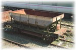 An additional diagram (1/588) was however issued to cover the conversion of 221 wagons to carry slag ballast. This material is less dense than normal ballast and the modifications entailed extending the sides and ends upwards to provide more volume capacity. The extentions were built on top of the existing hopper capping and always had a temporary look about them. One other variation that does not appear to have been distinguished is the fitting of extended hopper chutes to various Dogfish allocated to the Southern Region. These allowed ballast to be discharged beyond the third rail. Some of the Dogfish on the Southern were renamed with a new fishkind name of 'Mer-Dog' due to their use in conjunction with Mermaid side-tipping ballast wagons. The Dogfish fleet became ZFV-As under TOPS with a variety of design codes starting from ZF501A. Livery details were the same as for the ZEVs.