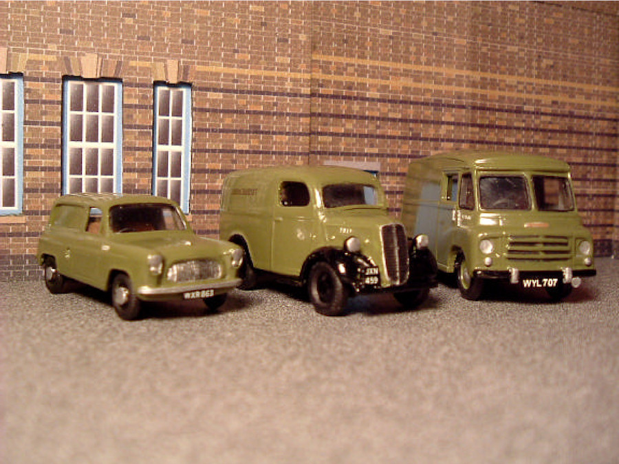 In LTE days a yard at the back of a bus garage or trolleybus depot was always worth a visit just in case any service vehicles were hiding there. Here in 1961 we find Ford 100E van 1100F, E83W van 791F, and Austin LDO1 van 1110AS just waiting to be 'copped' and underlined in the ABC! The models, which still require another visit to Chiswick for a little more detailing, are reviewed below.