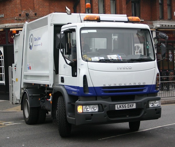 Details: Additions to the owned fleet were few and far between for much of the late 1990s and early 2000s. With a number of vehicles presumably due for replacement soon, two new lorries arrived in Autumn 2005. These were based on the Iveco EuroCargo model, an updated version of the Iveco/Ford Cargo and SuperCargo, and included refuse truck 2586 seen here at Barking Station on 6th October 2005. While earlier Cargo lorries had been dual badged and numbered with an F suffix, the new examples were pure Ivecos. Could this be why they carry un-suffixed fleetnumbers? As an aside, the I suffix was used for a pair of Fiat Ducato vans in the mid-1980s. Iveco is the truck and bus division of Fiat so this suffix could have been reused. |