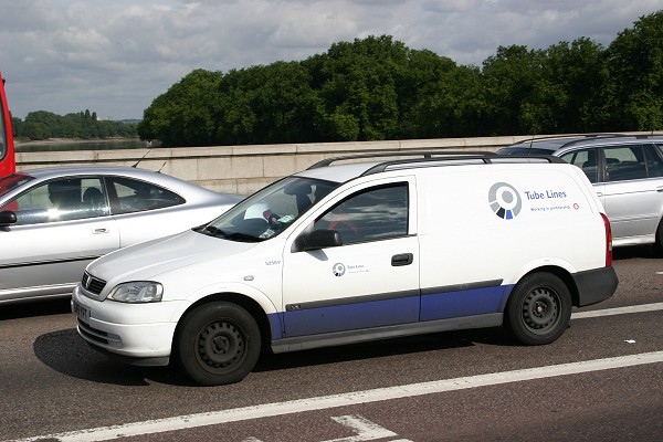 Details: Vauxhall Astra van 5258V was new in September 2001 and was latterly operated by Tube Lines. On 4th August 2005 it was seen crossing Putney Bridge. |