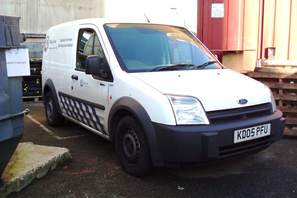 Details: The recent variation in LUL livery for the Escalator Services department is seen on Ford Transit Connect 5688F at Griffith House on 15th November 2005. |