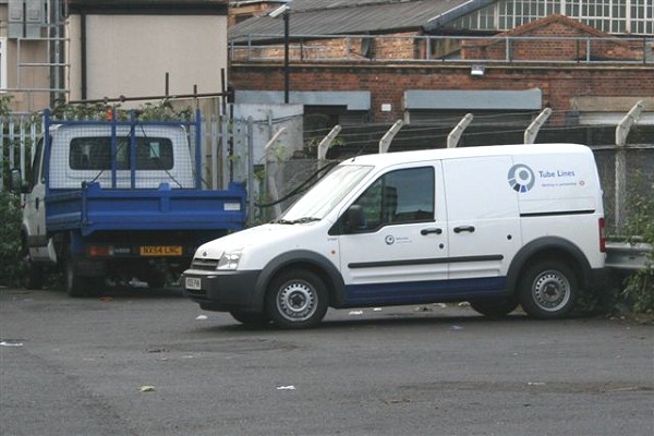 Details: At Griffith House on 3rd December 2005, the yard was host to Ford Transit Connect van 5765F in standard Tube Lines livery. Beyond that is an Iveco Daily dropside NX54LNC which is believed to be a contractor's or hired vehicle. |