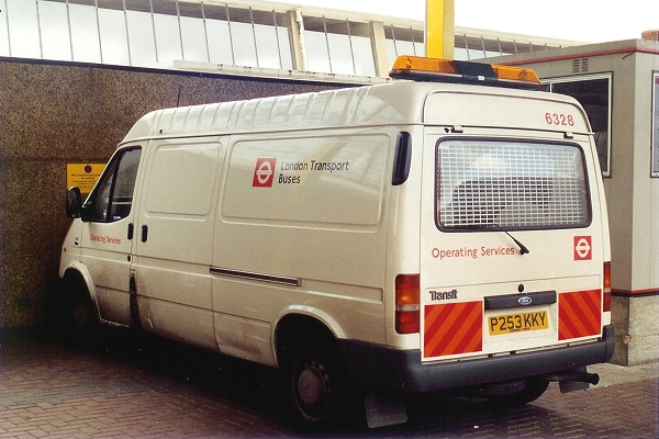 Details: To me the strangest thing about this Ford Transit van parked at Uxbridge Bus Station is not the curious rear chevrons or the tail-gate back door, but the number applied near the top. What is 6328? |