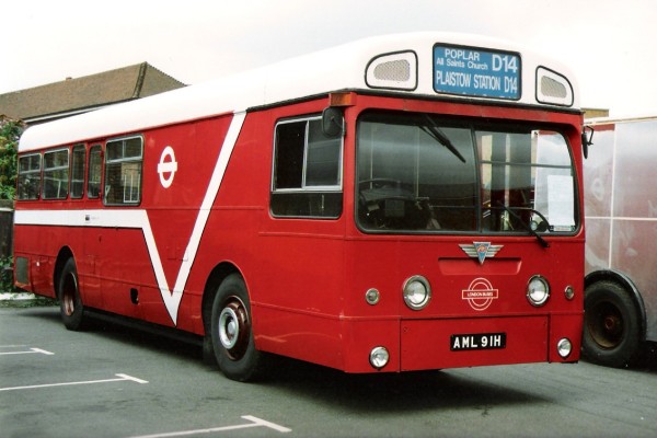 Details: The AEC Swift and Merlin buses bought by London Transport had comparatively short lives in their original role, although a few were retained for other duties. SMD91 was one of these, being converted in 1978 into a mobile classroom and video bus. It was given a smart red and white livery and officially renumbered STB91. Despite this, it did not see a great deal of use and was sold in the early 1990s, fortunately into preservation. It is seen here being rallied with a most unusual blind fitted, the D14 being one of the minibus routes run by Docklands Transit. |