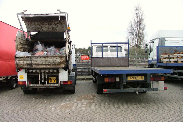 Details: Vehicles in the lorry yard at Acton Works are always parked towards the railway lines, so there is no ideal way to photograph them! However, rear views can be just as interesting. This picture taken on 22nd February 2006 shows two Mercedes-Benz lorries. 2556M on the left was a mini dustcart new in 1996, while 2487M on the right dates from 1990. The latter was new as a dropside in red livery, but now operates as a flatbed. At 16 years old, and with new emissions regulations due to be enforced in the future, lorries such as this are just about due for replacement. The red object to the left in this view is a large trailer used to transport a tube train mock-up, although being outsized it is not often used. To the right is Iveco EuroTech flatbed 2565F, recognisable by its sleeper cab. With permission of Tube Lines |