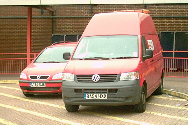 Details: This picture taken at Eltham Bus Station on 16th March 2006 shows Volkswagen Transporter van 5668VW parked alongside Vauxhall Zafira 5573V. It has been included as it shows how fluid the allocation of LBSL vehicles can be, 5668VW having been seen at Turnpike Lane, Aldgate, Bow and London Bridge in the preceding months. |