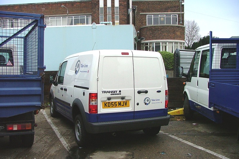 Details: Acton Works on 22nd February 2006 contained a mix of new, recently retired, and locally-based vehicles. One of the former was Ford Transit Connect van 5846F in Tube Lines livery. The identities of the flanking Ford Transit Dropside Trucks were unfortunately not recorded due to shortage of time. With permission of Tube Lines |