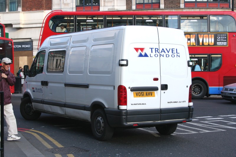 Details: Connex and later Travel London operated at least four of these long-wheelbase Vauxhall Movano crew vans for several years before one was caught on film. Giving the game away at Victoria Bus Station on 8th April 2006 was VO51AHV. |