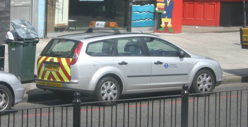 Details: Together with two Ford Transit Connect vans in the numbered fleet, at least three Ford Focus estate cars carry this silver livery with blue lettering for TfL Highway Maintenance. These however do not appear to be numbered. Kim spotted VU05NNW at Bow on 28th April 2006. |
