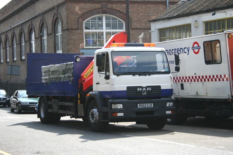 Details: MAN LE dropside 2579 is no stranger to this site, but this is the first picture of it in motion! Taken on 18th April 2006 on Bollo Lane, it was loaded with shrink-wrapped escalator steps, and was passing ERU Volvo 2570V. |