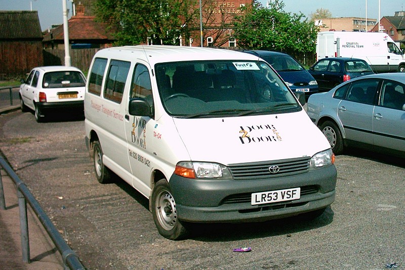 Details: We recently illustrated one of the Door-2-Door vehicles used on contract to First London from their Hackney Garage. As this view taken at Becontree Heath on 5th May 2006 shows, First's Rainham base also makes use of the firm. The vehicle this time is a Toyota Hiace minibus, carrying a white livery and the fleetnumber TA-04. It is believed that Door-2-Door also do work for a number of other organisations (including Health Trusts?) and the fleet is not dedicated in such a way that it would be worthwhile trying to list them. |