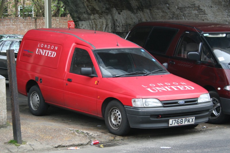 Details: Very few London bus companies still use service vehicles dating from pre-privatisation. One that does is London United, which took leased Ford Escort Van 4193F from CDS in June 1995. Over 10 years later it was still going, presumably now having being purchased. In this view taken under the arches at Shepherds Bush Garage on 18th April 2006, its new fleetnumber of S2 can be seen.