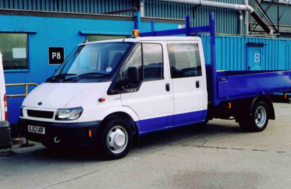 Details: Found at Lillie Bridge in late-2003 was this Ford Transit dropside truck with crew-cab and no lettering other than fleetnumber 5476F (KJ53UOF). |