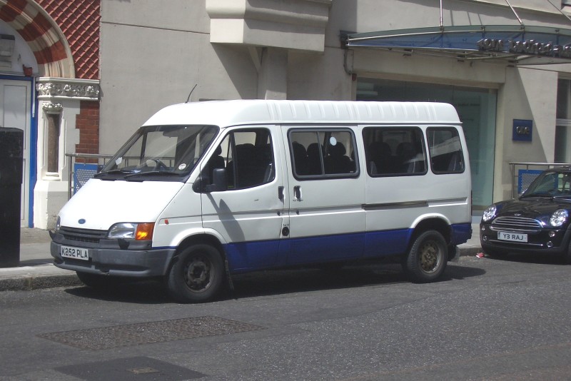 Details: Some ex-service vehicles are easy to spot, like this one found in Bedford Avenue (off Tottenham Court Road) on 24th June 2006. Originally 2503F in the CDS fleet, it was one of relatively few Transit-sized vehicles numbered in the owned series at that time. One thing that does not show up very clearly is that this minibus retained black legal lettering for London Regional Transport when seen, although most other lettering had been removed. |