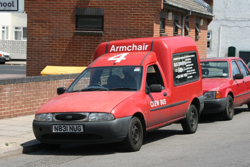 Details: The Ford Courier Kombi was a curious vehicle, being based on a van derived from the Fiesta car. Many were converted as wheelchair carriers, though this is presumably not one of them! Armchair 4 (N831NUG) was seen at the Mortlake terminus on 22nd June 2005. |