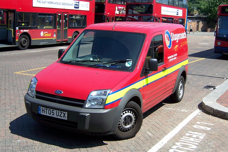 Details: With the news that Stagecoach is selling its London bus operations breaking in 2006 it is timely to show another view of fully-liveried Ford Transit Connect Van 95089 (HT05UZX) at Lewisham Bus Station on 18th July. The numbering system used is applied nationally to all Stagecoach service vehicles so will presumably change under new ownership. The name and logo may be retained for a while but presumably will also eventually change. Indeed many buses had their Stagecoach names removed within days of the announcement. |
