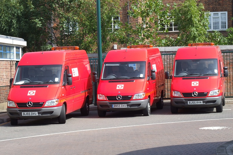 Details: Lined up in the sunshine at Turnpike Lane Bus Station on 6th September 2006 were three of the LBSL Mercedes-Benz Sprinter vans new earlier that year. These vans have filler points for petrol on the nearside and LPG on the offside. |