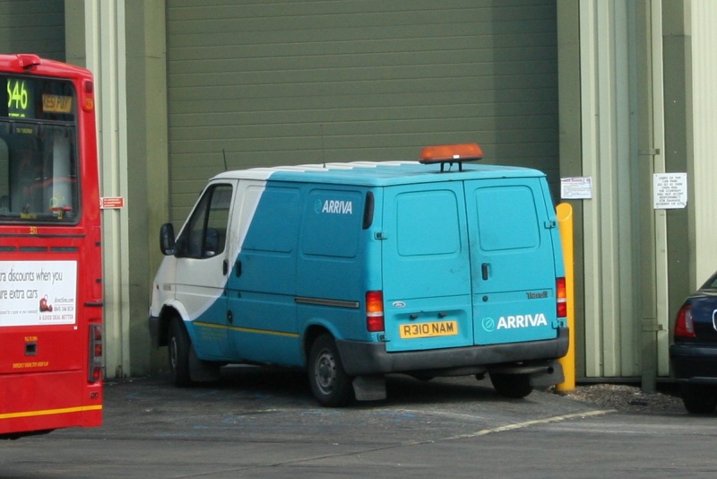 Details: Not previously reported is this Ford Transit van found at the Arriva garage in Grays on 8th October 2006. R310NAM carries the national Arriva bus livery and a fleetnumber which unfortunately could not be made out. The Grays depot has been managed by various parts of the Arriva empire, and is currently known as Arriva Southend. |