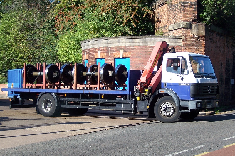 Details: There are three large flatbed lorries in the current Tube Lines fleet, the oldest of which is 2553M new in 1995. On 3rd October 2006 it was seen leaving Acton Works with a load of wheelsets. |