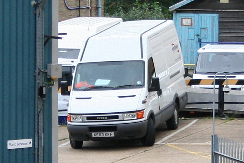 Details: From the bridge on Cromwell Road you can just see part of the main yard at Lillie Bridge, in the gap between two buildings. Parked conveniently in line with this gap on 28th October 2006 was a unique service vehicle in the form of 5506I. This Iveco Daily panel van was leased in July 2003 together with Daily dropside 5505I. Although we have listed the livery as White/Blue in the past, it would appear that the lower parts of the body are covered in grey plastic skirt panels so the livery record should probably be amended to all white. Further SVs are just visible behind. |