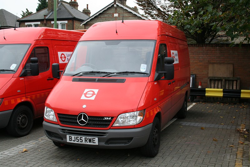 Details: Over a year after the first arrived, we still have not tracked the locations of all 20 of the Mercedes-Benz Sprinter vans leased for LBSL. Thanks to Scott we now know that the two at Kingston are 5808M and 5809M, the former being nearest the camera in this shot taken at the back of Cromwell Road Bus Station on 30th October 2006. |